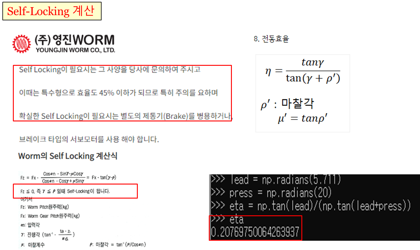 위와 같이 계산하여 Self-Lock이 충분히 걸리는 조건을 파악하여 설계에 착수했다.