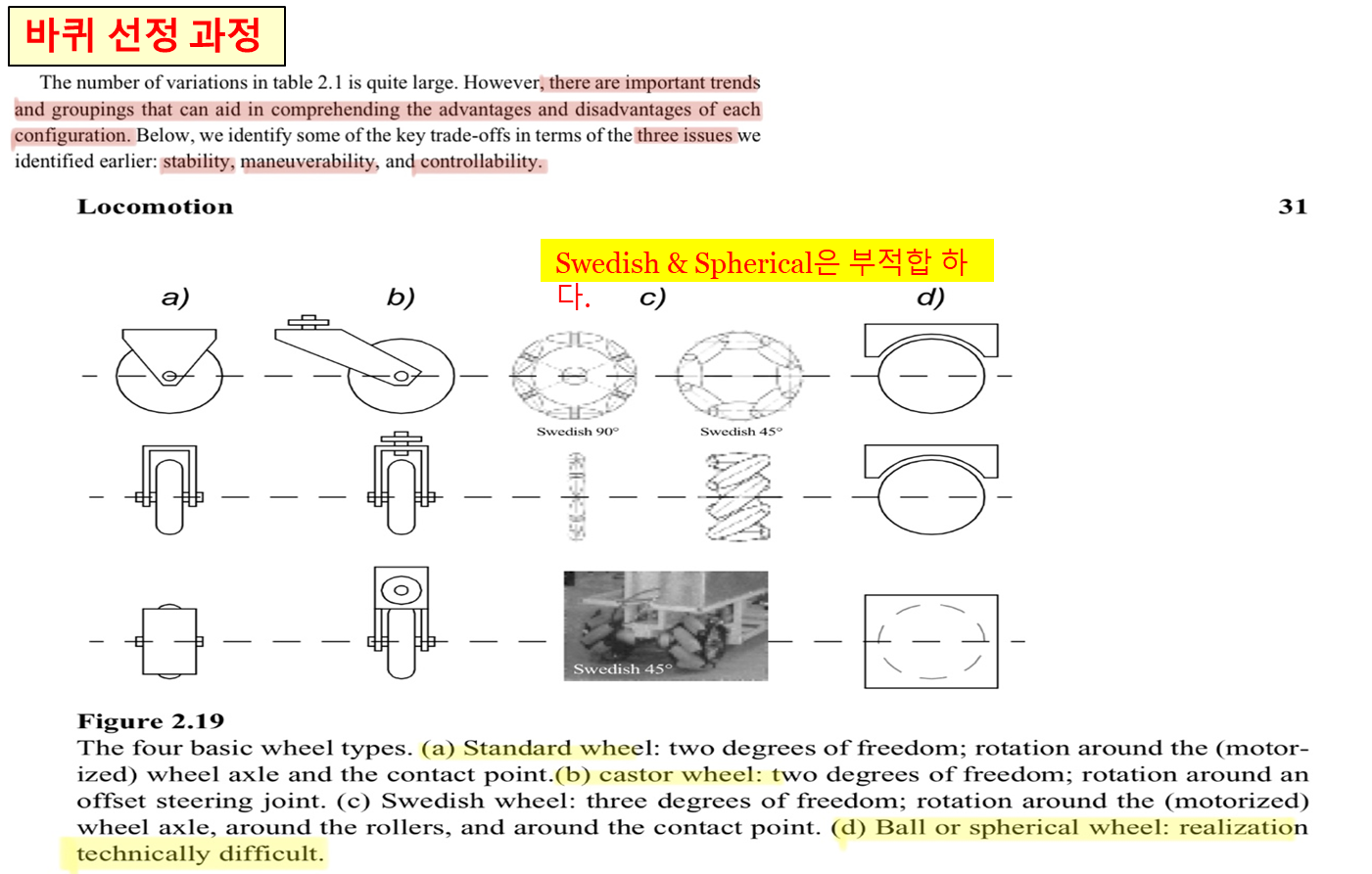 그림 4. 를 참조하여 Standard는 방향 전환이 불가능해서, Swedish는 지면에 너무 민감해서,